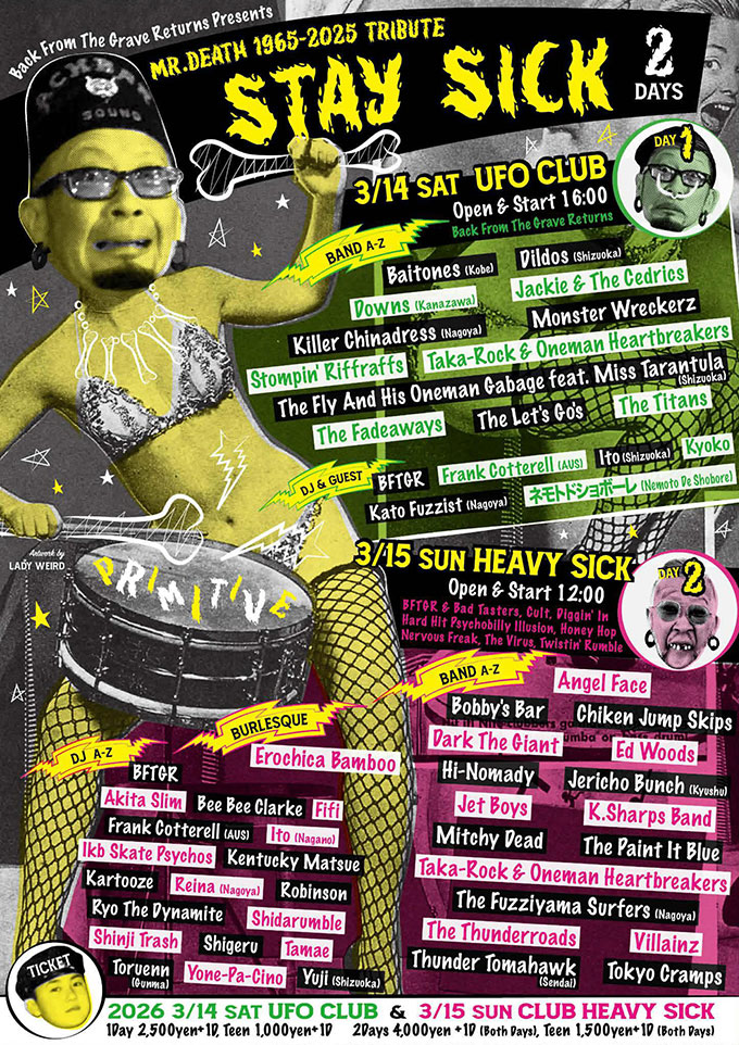 Sat.3/14 UFO CLUB,Sun.3/15 CLUB HEAVY SICK 2026 2Days